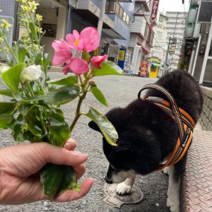花壇の花をとって、お供えにくださる。
