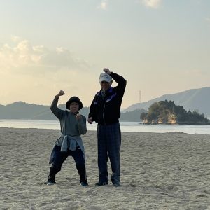 砂浜に出ると、波がきらきら。