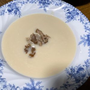 できあがる見事なカブラのスープ。