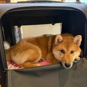 ママと膝抱っこで移動。