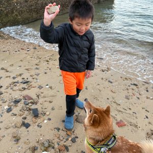 ね、石なげて。